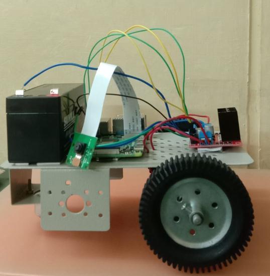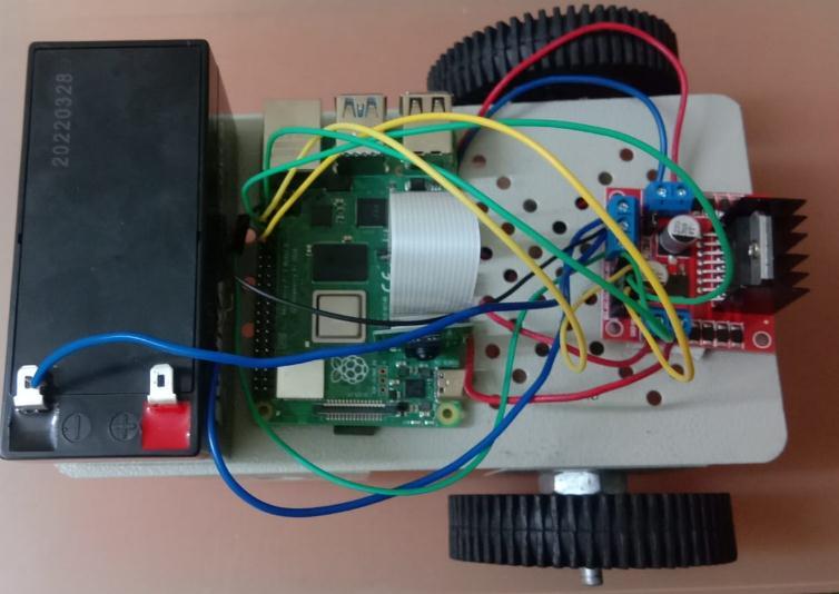 Raspberry Pi, the wheels of the motors are rotated through motor driver. The motor driver is connected to theRaspberryPiusingGPIOpins.