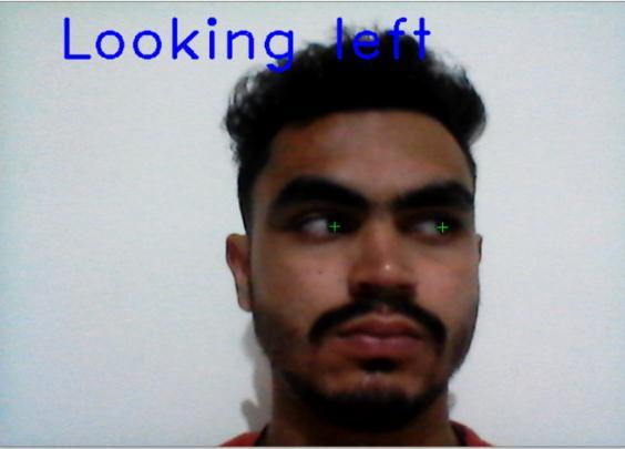 The detection fromthePi Camera of the person looking towardsleftisshowninthe Fig 10.Hencethismessage is passedtothemotordrivertorotatetheleftwheelinanti clockwise direction and right wheel in the clockwise directiontomovetowardsleft.
