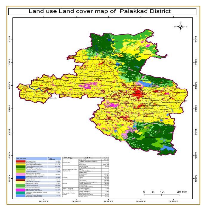 Landcovemapping,amethodthatquantifiespresentland resources into a variety of thematic categories such as forest, grass, agriculture, waste land, wet land water and build ups makes it simple to measure present circumstances. The land cover map is given below. The higher chance of landslide occur in evergreen/semi evergreen Forest. The frequency ratio is 1.93.Landslides also mostly occurs in agriculture plantations, forest plantationsandscrubforest.