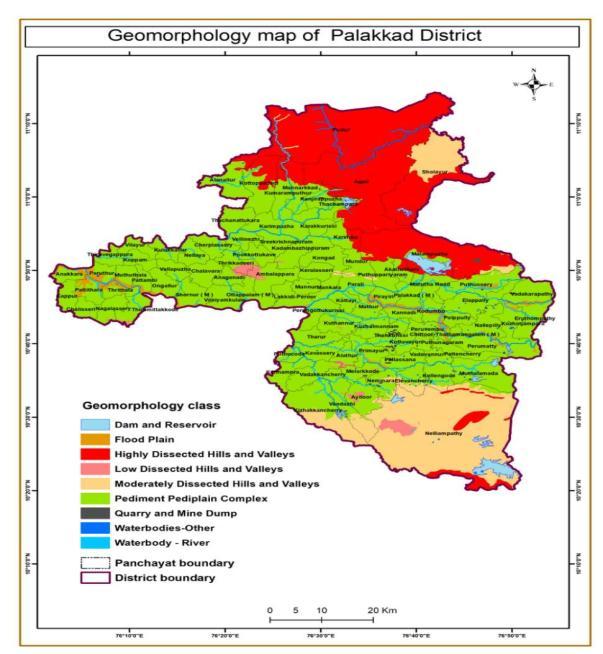Geomorphology is the study of surface features of earth crust like land forms, origin and development of land forms and mechanism of geomorphological processes which evolve the land forms. There are nine classes of which Highly Dissected Hills and Valleys, Moderately Dissected Hills and Valleys, Pediment Pediplain Complex hasthehighestnumberoflandslideareas.Ithasfrequency showingof 2.82319412,2.125381507,0.116131536.