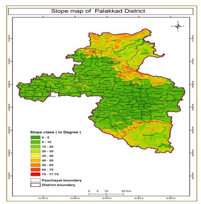 Slope is one of the major factors affecting landslide. It is expressed as percentage or degree. The chances of landslide occurrence also increases with increasing slope value. The slope angle values were divided into nine categories: 0⁰ 5⁰, 5⁰ 10⁰, 10⁰ 20⁰, 0⁰ 20⁰, 30⁰ 40⁰, 40⁰ 50⁰, 50⁰ 60⁰, 60⁰ 70⁰,70⁰ 77.75⁰. The highest number of landslide occurs in 20 30 classes and frequency ratio is 3.23.