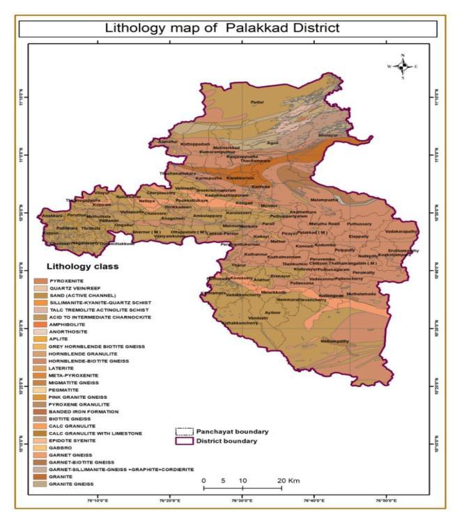Figure 12:Geomorphology map of Palakkad district 3.12 LITHOLOGY