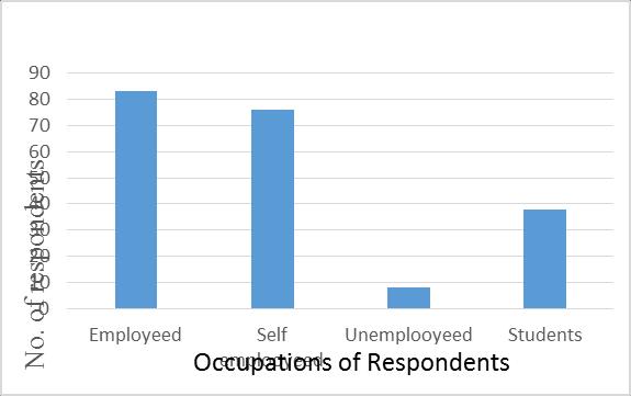were self employed, 8(4%) of the respondents were unemployed; and 38(19%) of the respondents were students.SFigure3.4showstheoccupationsofrespondents.