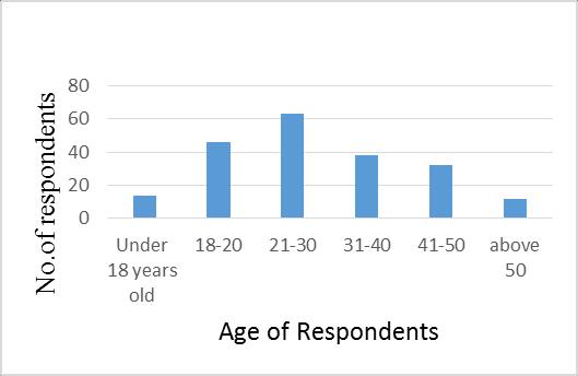 Driver age is one of the main contributing factors to road trafficaccidents,sointhisresearch,thisquestionwasadded totheexamtodeterminetherespondent'sage.Asshownin figure3.2,theageofrespondentsinthisstudywasclassified intosixgroups,betweenages18 20,21 30years,31 40,41 50years,andover50years.Theresearchfindingfromthis surveyshowsthat14(7%)oftherespondentsinthissample wereundertheageof18yearsold.46(22%)respondents were between the ages of 18 20years old. 61(31%) of respondentsaged21to30yearsoldandtheyisthemajority. Itisalsoseenthat38(19%)ofrespondentswerebetween31 and 40 years old, while 32(16%) of respondents were between 41 and 50 years old. However, 12(6%) of the respondentswereover50yearsold.Figure3.2indicatesthe agedifferencesofrespondentsinthisstudy.