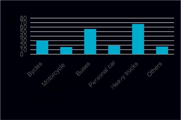 Ifthetypeofvehiclethatusuallycausescrashesisaccepted, itwillhelpthegovernmentcopewiththetypeinaspecific mannertoshielditfromthepopulation.Thisquestionwas addedtoevaluatethetypeofvehiclethatisusuallyinvolved inaccidentsinMogadishu.Researchfindingsfoundthatout of205,24(12%)ofthoserespondentssaidthatthetypeof vehicle that often causes injuries is a bicycle, 16(8%) of those respondents said that the type of vehicle is a motorcycle, 56(27%) of those respondents said that The type of vehicle that is always involved is a truck, and the remainderismadeupof19(9%)ofthoserespondents.Table 3.3andFigure3.9indicatethetypeofvehiclethatisalways involvedinroadtrafficaccidentsinMogadishu.