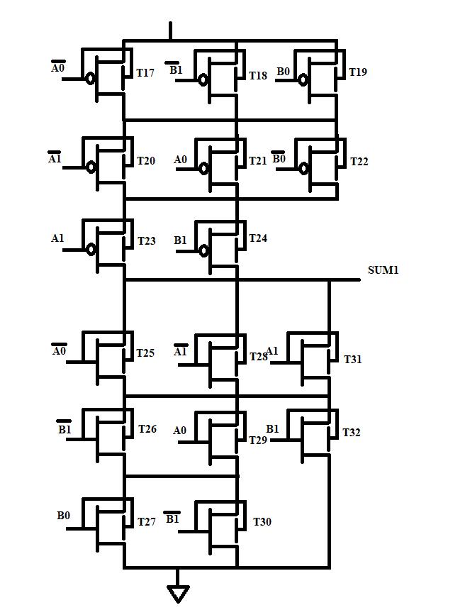 The circuit for a sum generator encoder can be seen in Figure 6; the output of the encoder is the addition of sum1 and sum2;thisaddsuptothefinalternaryoutput.