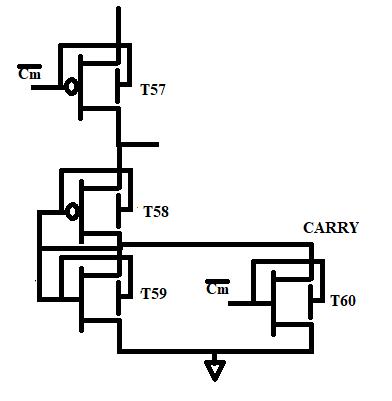 The carry generating circuit is shown in the figure that came before it (Fig. 8); the carry is computed by using the carry encodercircuit(alsoseeninFig.8)andderivingitfromCm.