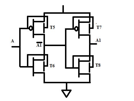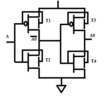 Thefollowing illustrationdemonstratesa decoder circuitthatisconstructedusing FinTypeFieldEffect Transistors,also knownasFinFETs.TheinputtothedecodercircuitisshownbytheletterA,whiletheoutputofthecircuitisindicatedby theletterA0.ThiscircuitisresponsibleforproducingtheA0andA0bars.