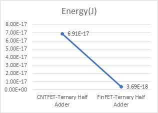 Figure9illustratestheenergythatwouldbeproducedby theproposedtechnology.Whencomparedtotheternaryadder Fin Type Field Effect Transistor (FinFET), the ternary adder CNTFET has an energy level that is much greater than the energyleveloftheternaryadderFinTypeFieldEffectTransistor(FinFET).