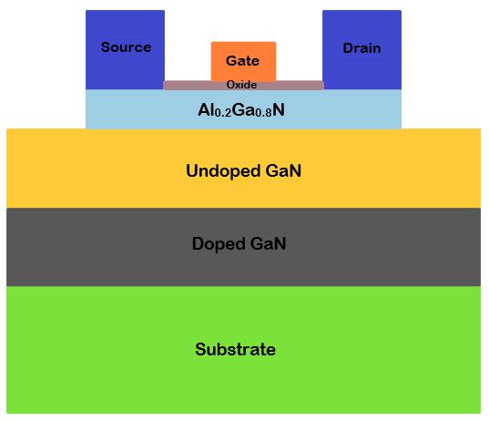 The heterojunction is created by two distinct materials, namelyaluminiumgalliumnitrideandgalliumnitride,inthe High Electron MobilityTransistor(HEMT),toonotedasthe two dimensional Electron Gas Field Effect Transistor (TEGFET) and the Heterostructure Field Effect Transistor (HFET)[1].Apotentialwellformsintheconductionbandon theGaNsideoftheinterfaceattributabletothesignificant bandgap energy contrast in the middle of AlGaN andGaN. TheAlGaN layer'selectrons will transfertothe GaN layer,