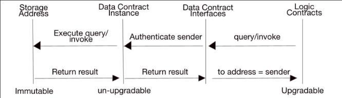 Tothisend,weformulateandimplementthecomprehensive combined model,Comprehensive data proxypattern[3],to fullyachieveupgradabilityaswellassecurityresilienceand scalability.Underthismodel,thedesignsmartcontractsin twolayersasproposedbytypicaldatasegregationpatterns, butwiththedistinctivecharacteristics.First,theyembedone extra authentication and data verification component betweendatalayeranditslogiccontractlayer,toruleout thepossibilityofDAOattacks.Second,weimplementaproxy patternatthedatalayertofullyachieveupgradability.