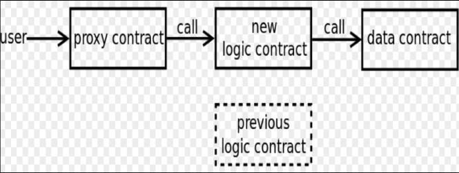 So far, there have been two categories of upgradable patternsdevelopedbyresearcherstoachieveupgradability ontheEthereumplatform.Thetechniqueusedinallthese solutionsistomapthestatesofstoragedata inthe newly deployedcontractstotheoriginalversions.Bydoingso,the statesofdatacanbeupdatedandmanipulatedbythenew contracts without making any changes to the previous versions,somethingwhichwassupposedlyimpossibletodo directlybefore.Forinstance,in[25],theauthorsintroducea datasegregationpattern,whichsuggeststhatacontractis writtenastwoseparate(sub)contracts;adatacontractanda logic contract. In this case, the upgradability is achieved throughupgradingthelogiccontractwithouttouchingthe datainthedatacontract.Inanotherapproach,OpenZeppelin [9]developedanovelmethodthatusesaproxycontractto overtaketheownershipofstorageaddressesofallversions ofagivencontract.Anycalltothetargetcontractwouldbe redirectedtotheproxycontractwhichinturn,willsendall transactions to the same address it controls, and through this,achievestheupgradabilitygoal.Tosumup,mappingthe statesofnewversionofthedeployedcontracttoitsoriginal storageaddressisthekeytoanystate of the artsolution.