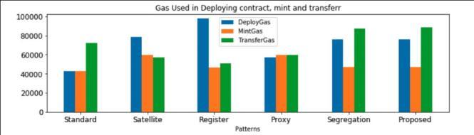 We also measured the gas consumed in the process of deployingsmartcontractsforeachpatternasshownin Fig.5.Asitcanbeseenfromthetheseabovetables,and TPSintable6,theamountofGas