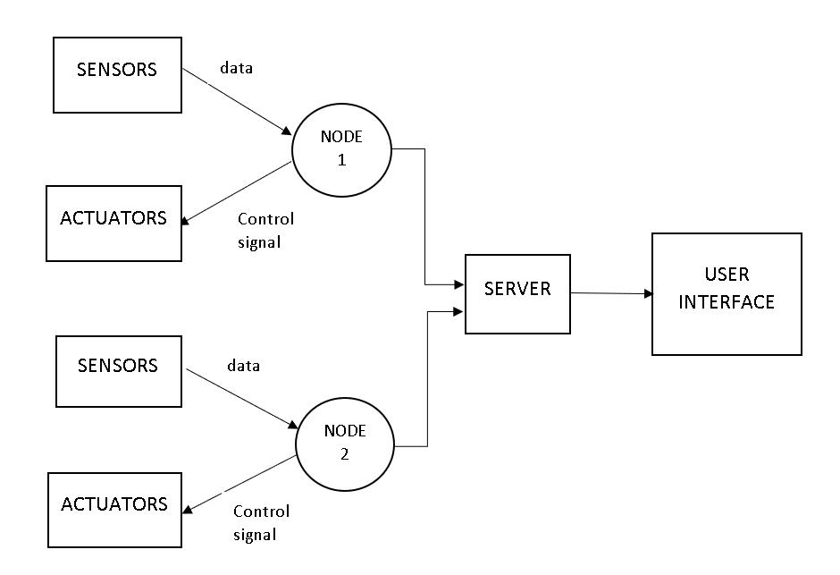 The proposed greenhouse monitoring and automation systemcanbemodeledasshowninthefig1 Itshowshow variouscomponentsofthesystemareconnectedwithone another.