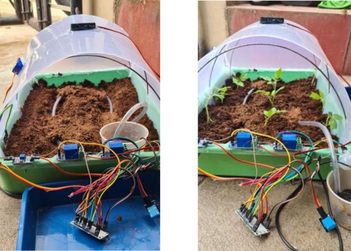 Thegreenhouseswerebuiltandtheseedsweresowninthe greenhouse. Tomato plant was selected for the demonstration.Thefigures4and5showsthegrowthstages oftomatoplant.