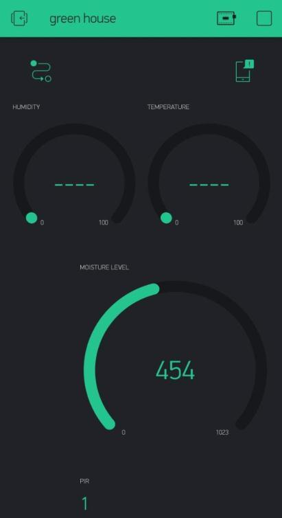 Theandroidapplicationwasdevelopedforthegreenhouse monitoringandautomationwhichisshowninthefigure6.It shows the humidity, temperature, soil moisture and the intruderalert.Italsoallowstheusertosetthevaluesofthe thresholdvariablesfordifferentcropsmanually