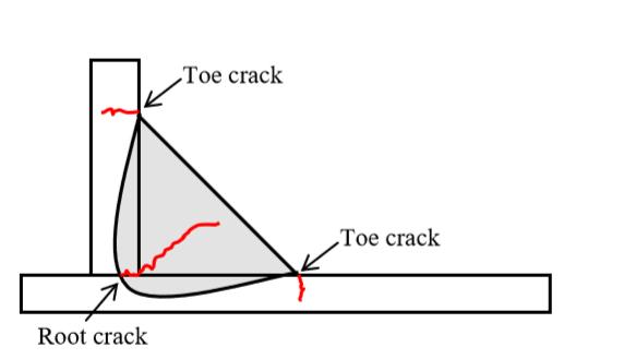 The weld dimensions have to be done by taking considerationofthreecriticalsectionsasshowninfigure1.4 below. These are section I, section II and section III. The crackinitiationtakesplaceinsectionIIIandwhilesectionII andsectionIcorrespondsweldtoecrackpropagation.There arethreepossiblemodesoffailureinweldjointwhichare toecrackatendsandrootcrackatbottommidasshownin figure1.5below.