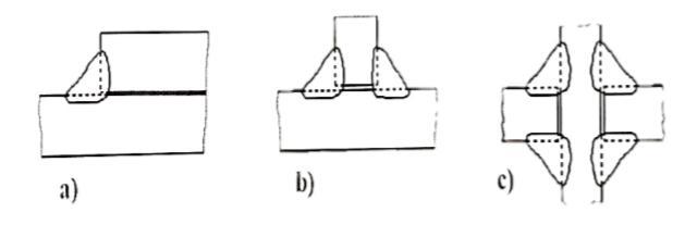 Figure1.3 Filletweldsindifferentjointsa)Lapjoint b) T joint c)Crossjoint[1]