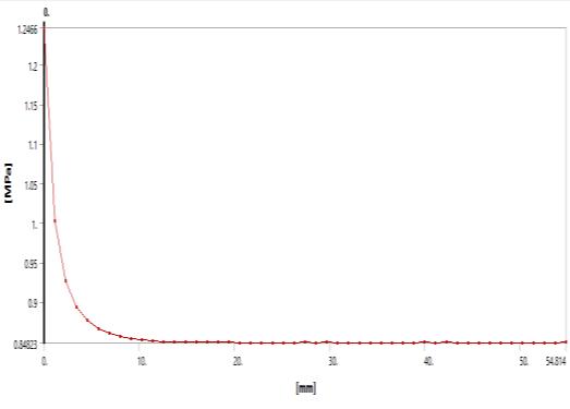 The shear stress value is plotted along the curve on tube region as shown in figure 5.5 above. The maximum shear stressisobservedattheintersectionregionwithmagnitude of1.2467MPawhichreducesalongthelength.Thevariation ofshearstressalongthelengthisshownincurve(figure5.6 below).
