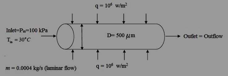 l=0.1 m d=500 ���� Pin=100 kPa m= 0.0004 Kg/s Tin= 300 C ∅ 106 w/m2