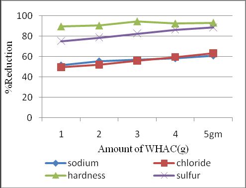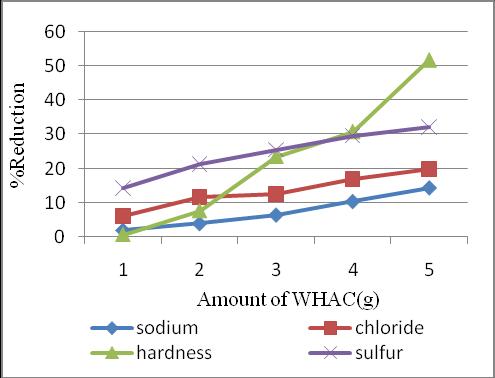 Percentage reduction of seawater constituents with the additionofWHACinspecificintervelsarefindout.