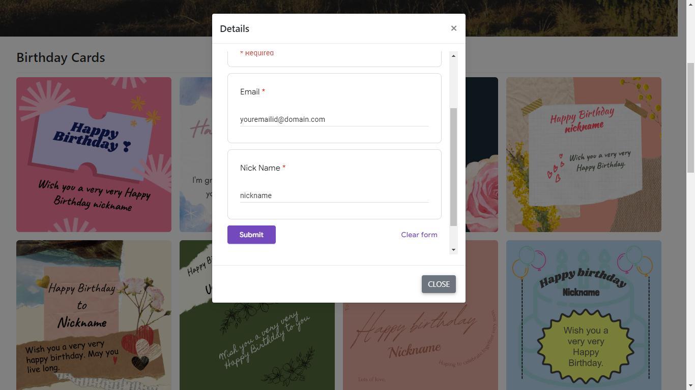 Click‘Submit’andyourselectedcardwillbesenttotherecipientwithyourpersonalizedwishandnameprovidedtotheform Fig.8.