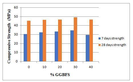 Table 3 Compressive strength at 7 and 28 days at various % of GGBFS