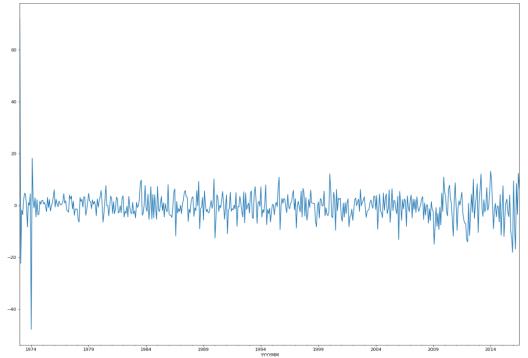 We target a yearly trend that requires an average of 12 consecutive values or months. The value in each entry in thecolumnisthemeanoftheprevious12values.Thefirst 11 values remain null as they do not have a sufficient number of values prior(12). The original data gets subtractedfromthenewdataofthemovingaverage.Itgets tested through the dicky fuller test that tells whether the conversiontostationarityissuccessful.