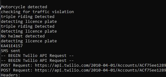 Infigure14,theuseofOCRalgorithmcanbeobserved.The numberplateisdetectedwiththehelpofopenalprAPI and the result is as shown. After detecting number plate SMS intimationissenttotheviolator.