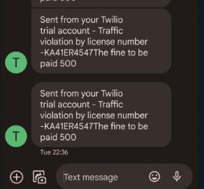 In figure 15, we can observe SMS alert that is sent by the systemafteridentifyingtheviolator’snumberplate.