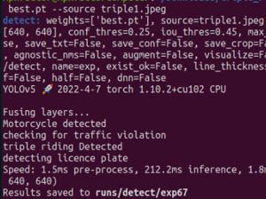 When the figure 9 is uploaded, at first Motorcycle is detected,thenitschecksforotherviolationsandidentifies theviolationastripleriding.belowistheoutput.