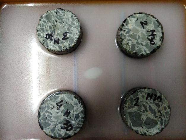 Total170numbersofcubespecimensof150mmx150mmx 150mmwereprepared.Coresamplesof3inchesdiameter wereextractedfromeachcubespecimenandthreeslicesof 30mmthicknesswerecutfromeachcoretoproducethree samplesforeachtest.Thesesamplesweretestedafter28th , 56th and90th dayforoxygenpermeability,watersorptivity andchlorideconductivitytest.