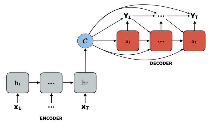 TwoRNNs,onefunctioningasanencoderandtheotheras adecoder,makeupthebasicencoder decoderarchitecture for language problems. The encoder receives the input sequenceandsummarizesthedataininternalstatevectors, also known as context vectors. The encoder's outputs are discarded, leaving just the internal states. To help the decodermakeaccuratepredictions,thiscontextvectorseeks toincludeinformationforallinputelements.TheRNNisa decoderinwhichthestartingstatesaresettothefinalstates, allowingthefinalstate'scontextvectortobeinputintothe decodernetwork'sfirstcell.TheSTARTtokenisalwaysthe initial input to the decoder. Each decoder's recurrent unit usesthistocreateanoutputaswellasitsownhiddenstate by taking a hidden state from the preceding unit. This procedureiscontinueduntiltheENDtokenisencountered. Finally, at each time step, the loss on projected outputs is computed,andthemistakesarebackpropagatedovertime toadjustthenetworkparameters.