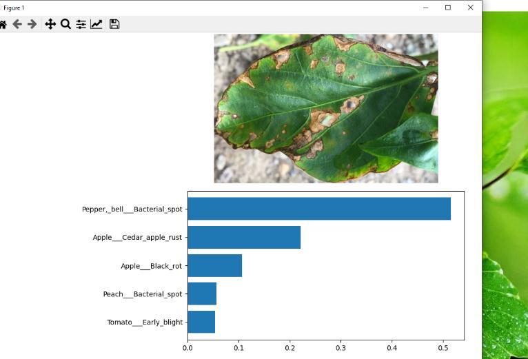 When an image is uploaded, accuracy is displayed as a graphwiththenameofthedisease,asshowninthefig 10