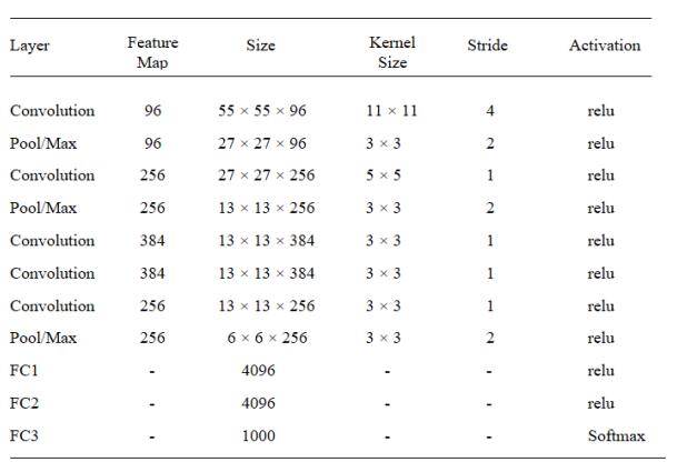 Inthisstudy,featureextractionandclassificationareboth carried out using a pre trained AlexNet. The big dataset named ImageNet, which comprises 14 million photos, has alreadybeenusedtotraintheAlexNetinthiscase.