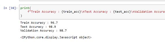 A set of experiments was conducted on a dataset that included two categories of healthy and unhealthy leaf images to represent the performance of the experiments. 60%oftheleafimageswereusedforthetrainingdataset, and the remaining 40%were used for the testing dataset. Forthepurposeofclassifyingandidentifyingleafdiseases, gathered image datasets are subjected to deep learning architectures such as AlexNet. 25 epochs were used, and the batch size was set to 64. To gauge the model's precision,40%ofthephotosfromthePlantVillagedataset wereused.40%oftheimagesineachclasswerechosenat randomtobetested.Thecorrectnessofthetestingdataset is greater than 98.9% as shown in the fig 6. In other words, 97 out of 100 input photos were correctly classified. Accuracy increases along with increasing the training dataset and epoch. The model's accuracy is at its highest,98.9%,atthe10thepoch.