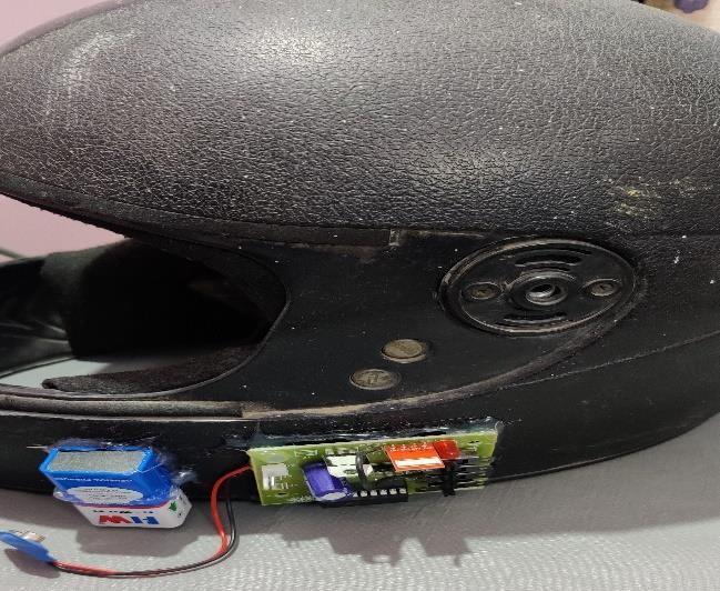 Tofinallyconclude,asmarthelmethasbeendesignedinordertohelptheworkerfromthedangeroussituationsif any.Thissystemprovidesusaclearandpoint to pointperspectiveoftheundergroundminesystemandprovidesreliable communicationusingIOT.Hence,itwouldbebeneficialtotheminerspresentinsidethemineandensuresthesafetyofthe workers. FIGURE1