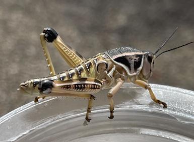 Brachystola magna, commonly known as the Plains Lubber Grasshopper, inhabits the plains region of the United States and Mexico.They populateseveraltypesofprairies,including desertprairies(Capinera,Scott&Walker,2004).Beingomnivores, they feed on herbaceous plants, grasses, feces, detritus, and insects including those of their own species (Wyoming AgriculturalExperimentStation,1982). Oxyspirura petrowi,aheteroxenousparasiticnematode,isdecimatingthepopulations ofbirdsintheOrderGalliformes especially C. viginianus. Thequails’populations,whichhaveanimportanteconomicimpact onthecentralplainsofOklahoma,Texas,andNewMexico,havebeendecliningatarateof4%annuallyfordecades(Houston & Easton, 2021; Sauer, et al., 2013). The United States Department of Agriculture (USDA) identified B. magna as an intermediatehost,andtheNorthernBobwhiteQuails(C virginianus)asadefinitivehost ofthe O. petrowi parasite(Brust,et al., 2014; Dunham, et al., 2016). The Northern Bobwhite quails have been especially vulnerable to the eyeworm disease thoughotherspeciesintheOrderGalliformescanbeinfected. Thelifecycleofthenematodeispoorlyunderstood;however,it is known that two hosts are needed, an intermediate host and a definitive host (Kistler, et al., 2016). Additionally, there is paucity of information on the grasshopper as well (Bright, Bernays, & Moran, 1994). In 2016, 174 B. magna were collected from the plains in Mitchell County, Texas. Thirty seven percent of the specimens were infected with third stage O. petrowi larvae Oxyspirura petrowi eggswerefoundinthefecesofboththe B. magna and C. virginianus (Blanchard,etal.,2019). Brachystola magna, a large flightless grasshopper with a reduced pink tagmen spotted in black (Richman, Lightfoot, Sutherland,&Ferguson,1993),emergesafteratwo yeardiapause. Thenymphalperiodlastsforapproximately45daysinthe wild. The maturation period before oviposition is around 23 days (Wyoming Experiment Station, 1982). Being a hemi metabolicinsect,itgoesthroughfiveinstarsbeforereachingadulthood Brachystola magna emergencestendtohaveahigher populationlevelthengrasshopperswithaone yeardiapause(Burleson,1974).Thegrasshopperisbivariant,flightless(Joern, 1981) and cryptic in rocky, gravelly soil with wild grasses, which it prefers (Jacques, 1953). Female B. magna have been