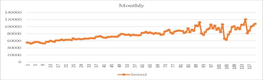 Thedatacollectionisanimportantstepforthisstudy.Data selectedshouldbeanalyzedtoknowthenatureofthedata. Trend,seasonality,cyclic,irregularity,etc.ofthedatashould becheckbeforeforecasting.Thenatureofthedatagivesthe ideaofwhatkindoftechniquesshouldfollowforforecasting. Forthestudytheseasonalityindexiscalculatedandplotted thegraphofthedata.