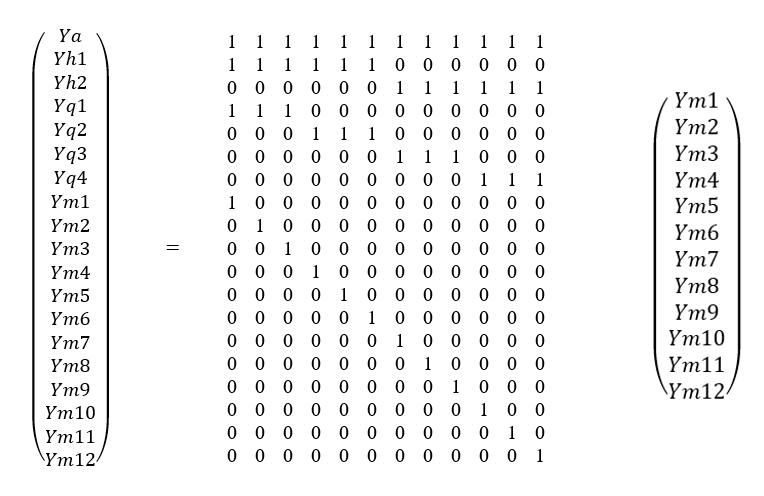 ŷA,h =ŷM1,h +ŷM2,h +ŷM3,h +ŷM4,h +ŷM5,h +ŷM6,h +ŷM7,h +ŷM8,h + ŷM9,h +ŷM10,h +ŷM11,h +ŷM12,h