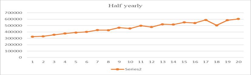 The nature of the data set can be understood from the correspondingplots. Formonthly,quarterly,andhalfyearly data,thegraphshowsaseasonality.Theseasonaldatacan’t useforsingleanddoubleexponentialsmoothingtechniques. So, the data are deseasonalized by dividing the data with corresponding seasonality index. For calculating the seasonalityindexthetrainingdatasetareused.Theplotsfor monthly,quarterly,andhalfyearlydataareshowninfig.2