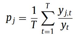 Thetop downapproachaimstoperformaforecastforthe toplevelofthehierarchy(ŷh),andthendisaggregateittothe differentnodesbyusingapredefinedproportion.Themost commonapproachistheuseoftheaverageforeachnode,j, relativetoits“parent”nodeasaproportion.Theequation forselectingtheproportion(pj)isgivenby;