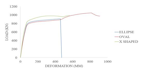 Low yielding materials used in modelling of dampers. By modelling dampers with low yielding material, circular dampershowsmoreloadcarryingcapacity(1177.7kN)and ductility(12.629).