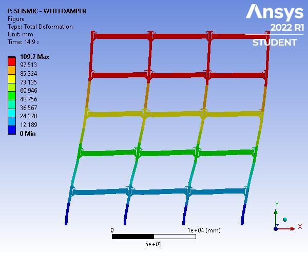 Fig15showsthemodelofframewithdamperandfig16 showsthetotaldeformationdiagram.