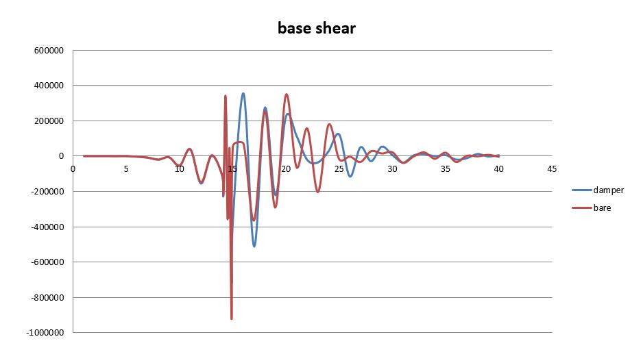 Thebareframehasadisplacementof100.95mmwhereas theframewithdamperhasadisplacement108.18mm.The bareframehasabaseshearof71643kNwhereframewith damperhasabaseshear57969kN.