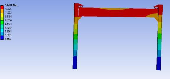 Fig 13 shows the model of frame with damper and fig 14 showsthetotaldeformationdiagram.