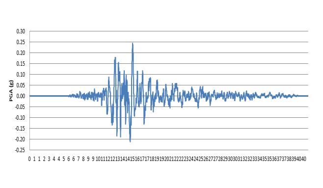 LoadingsuchasKobeearthquakeisappliedtothestructure. Fig 39 shows the Acceleration Time history of Kobe earthquake. Fig 40 shows the deflection of the building frame.