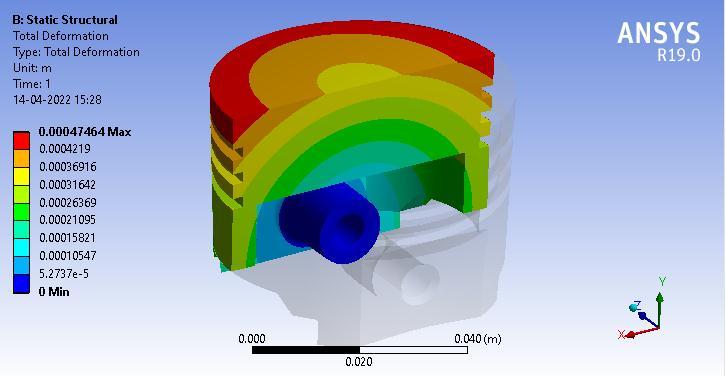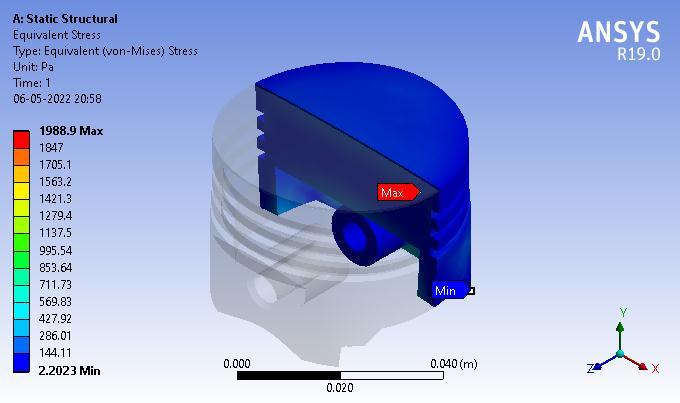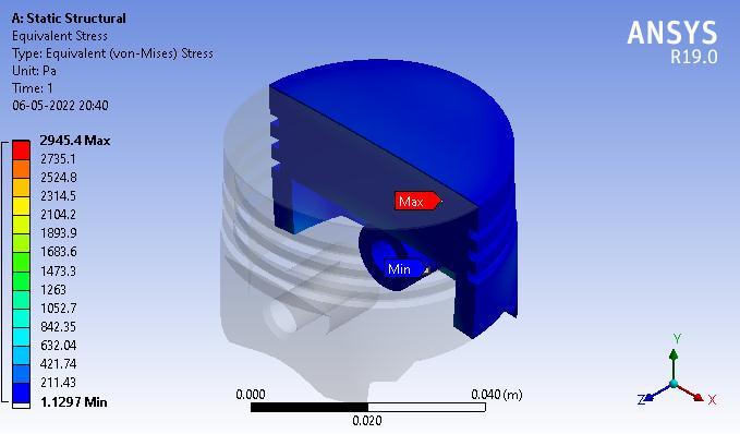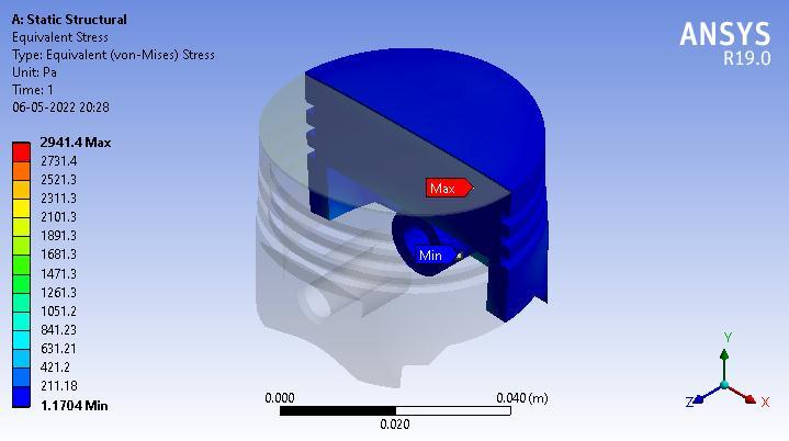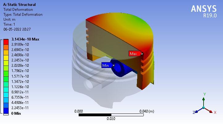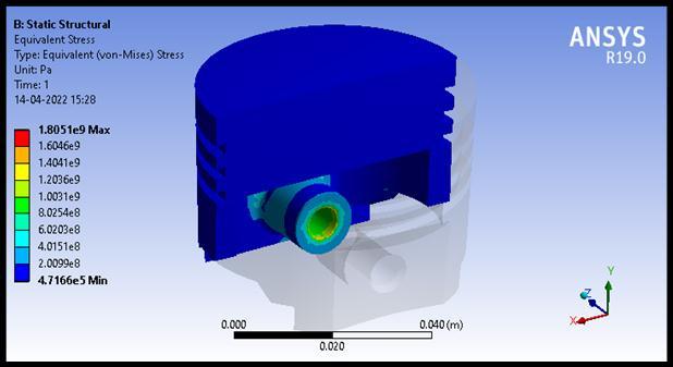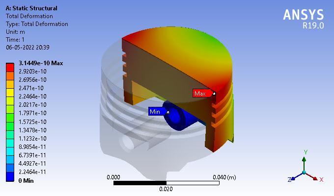 The analysis is carried out in Ansys software 2021. Following are Ansys results for conventional piston heads.