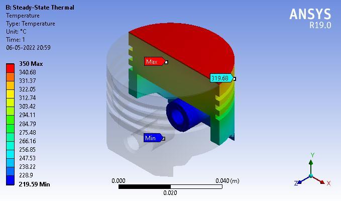 Thermal analysis is performed using the temperature distributionatthepistonhead,topland,ringregion,and skirtasshownintableno.3.