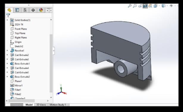 Modeling is carried out in Solidworks 2020 software by referring to piston dimension table no.1. The material applied on the conventional piston is aluminum alloy andthefollowingarethepropertiesofaluminumalloy: